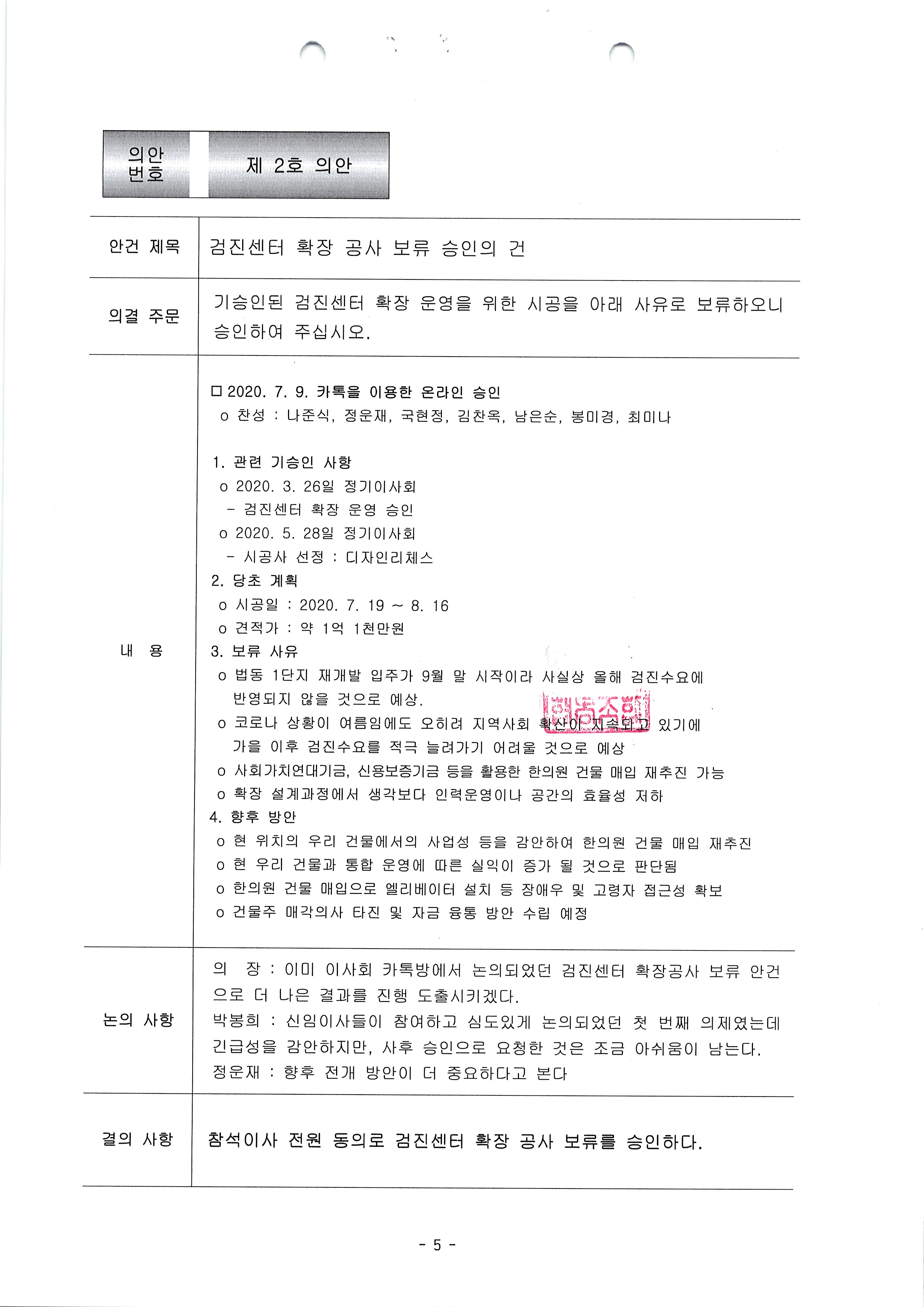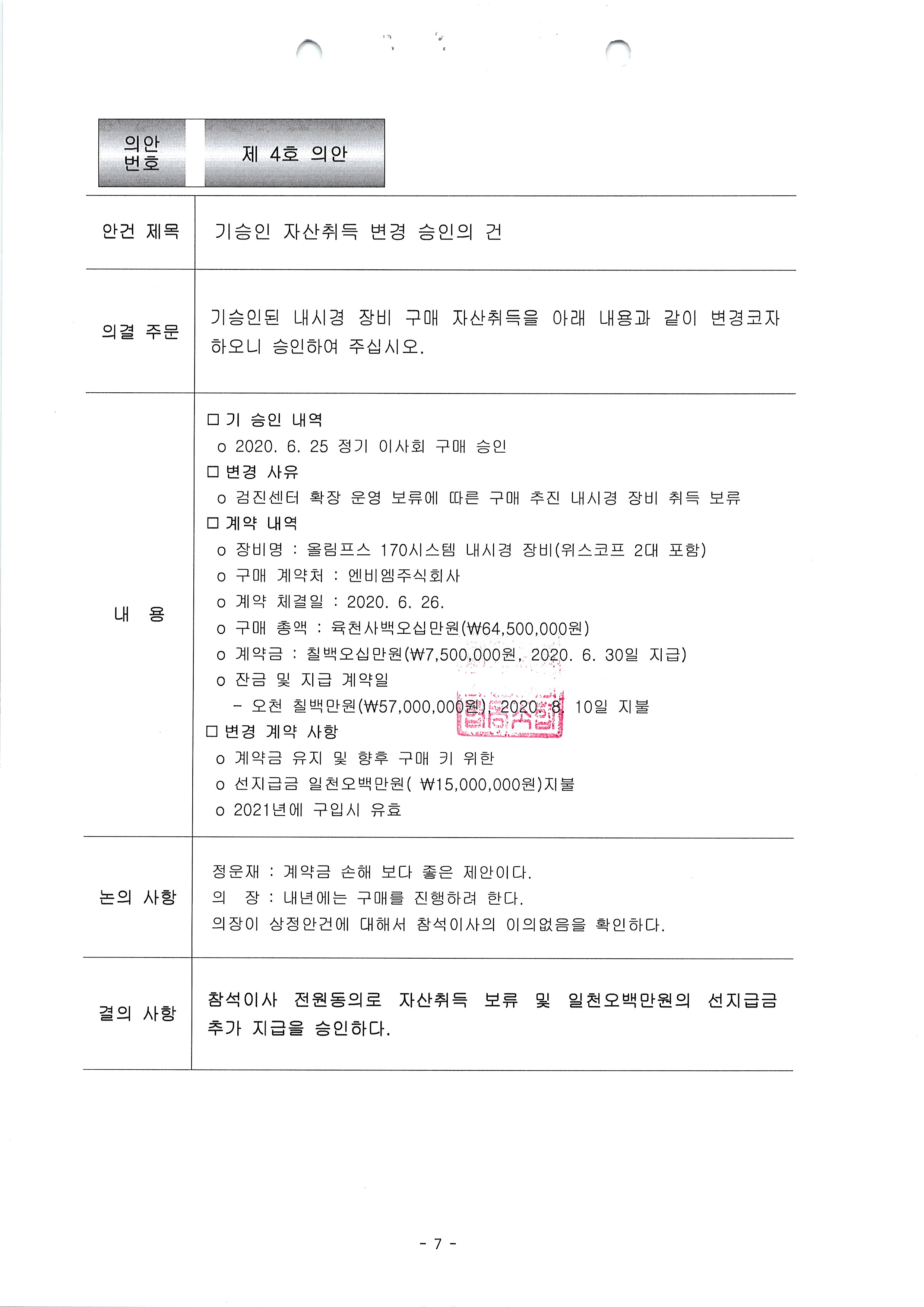 [2020-07] 정기이사회 결과보고 상세내용