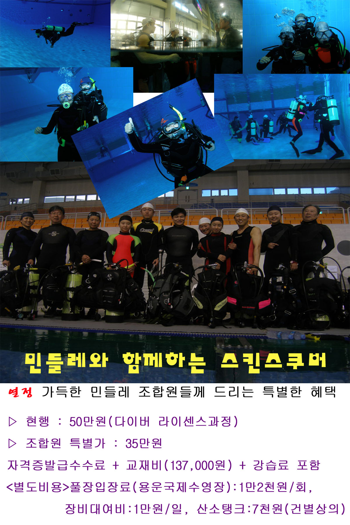 [비용변경공지] 스킨스쿠버강좌 개설~!! 상세내용