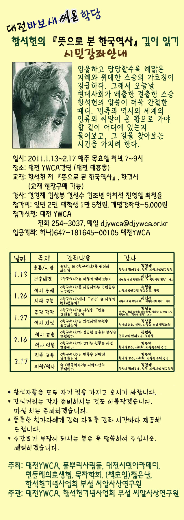 제목 바보새 씨알학당, 대전인문학 강좌 1기