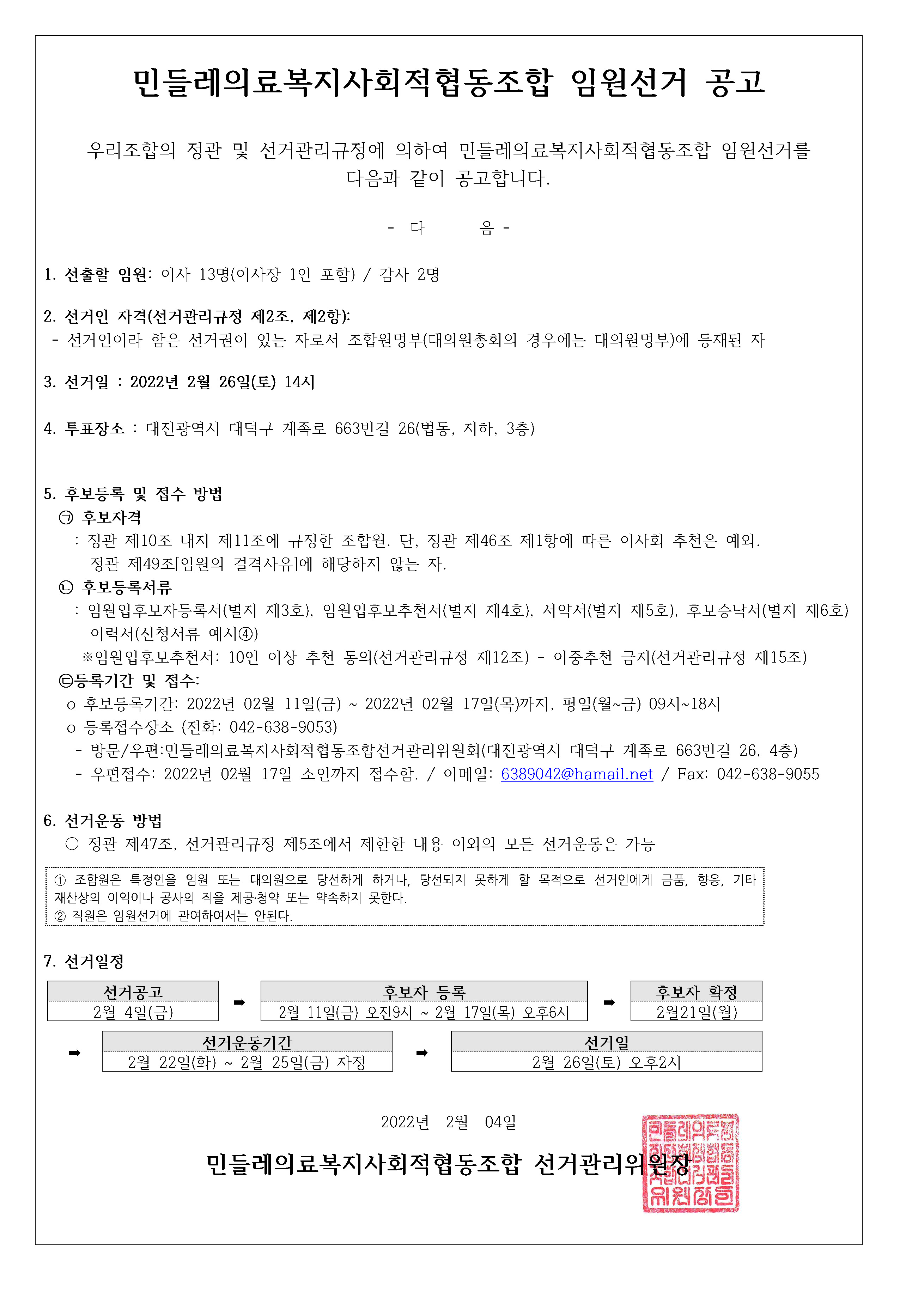 2022년 임원선거 공고 상세내용