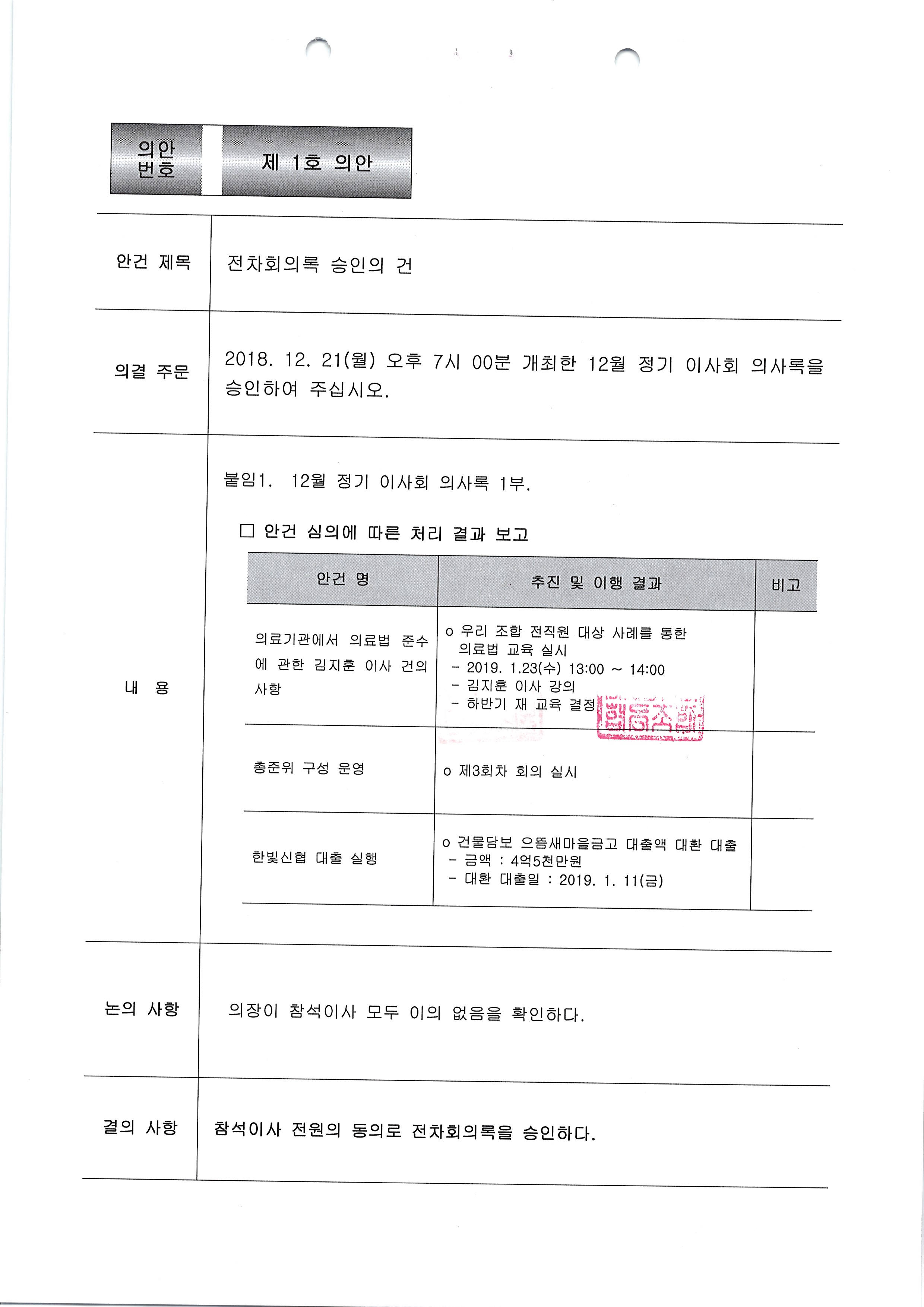 [2018-12] 정기이사회 결과보고