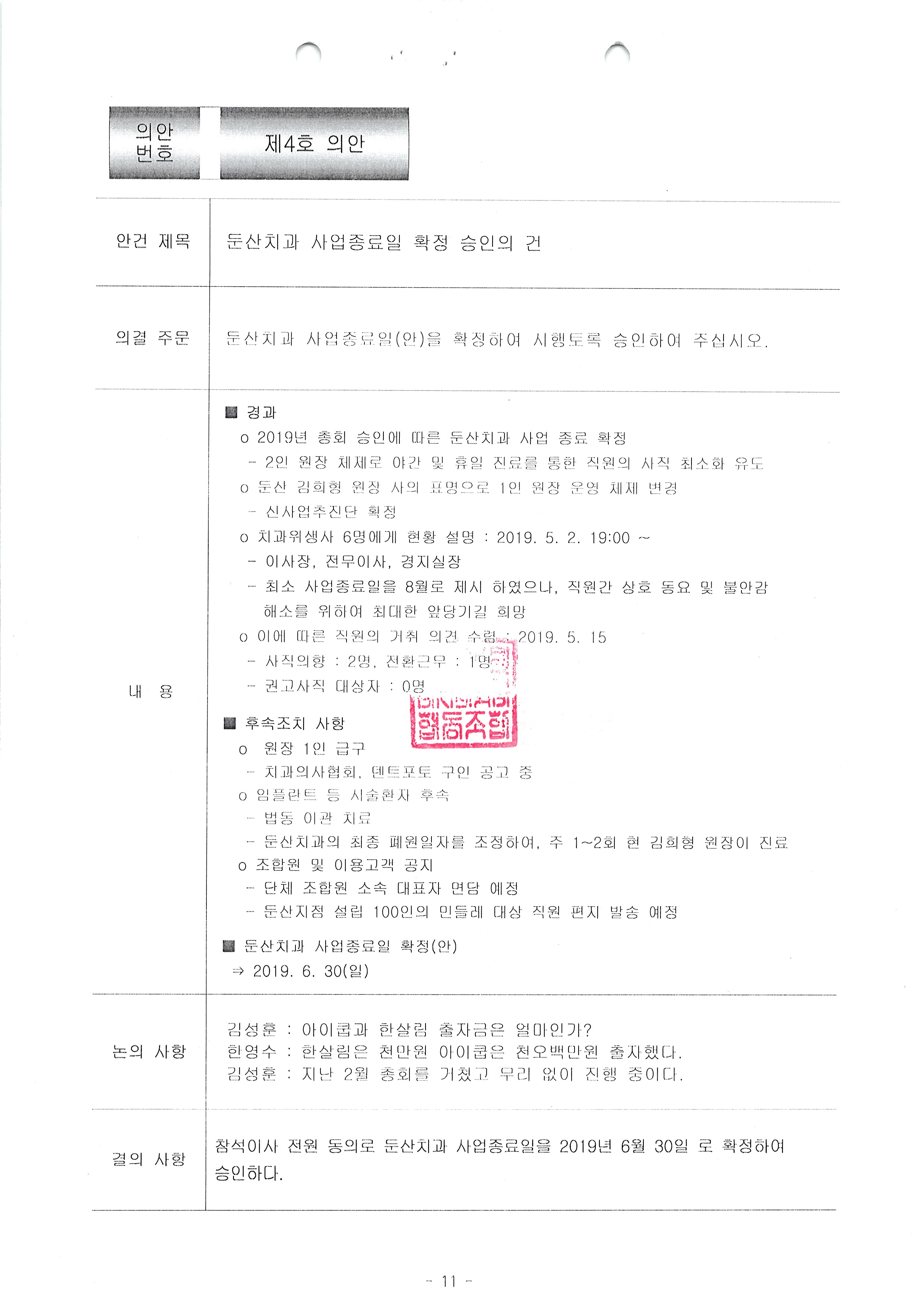 [2019-04] 정기이사회 결과보고