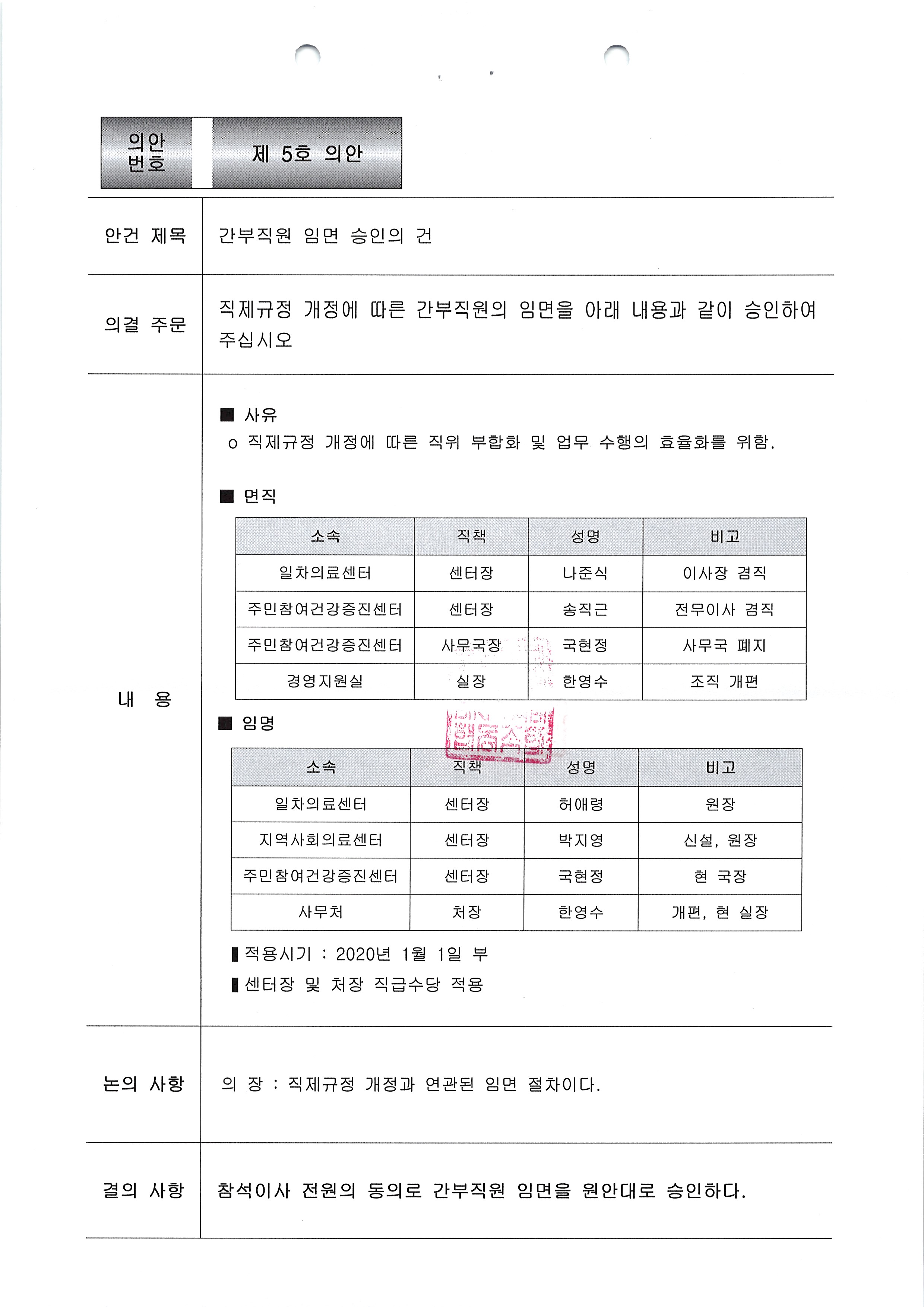 [2020-01] 임시이사회 결과보고