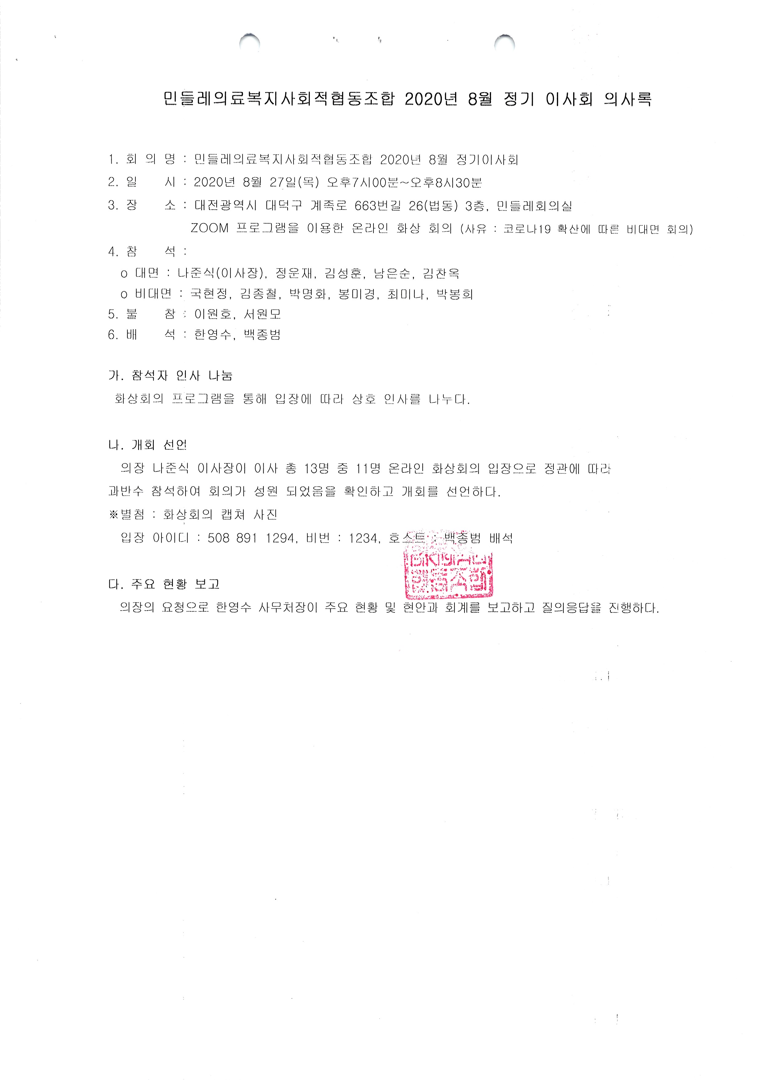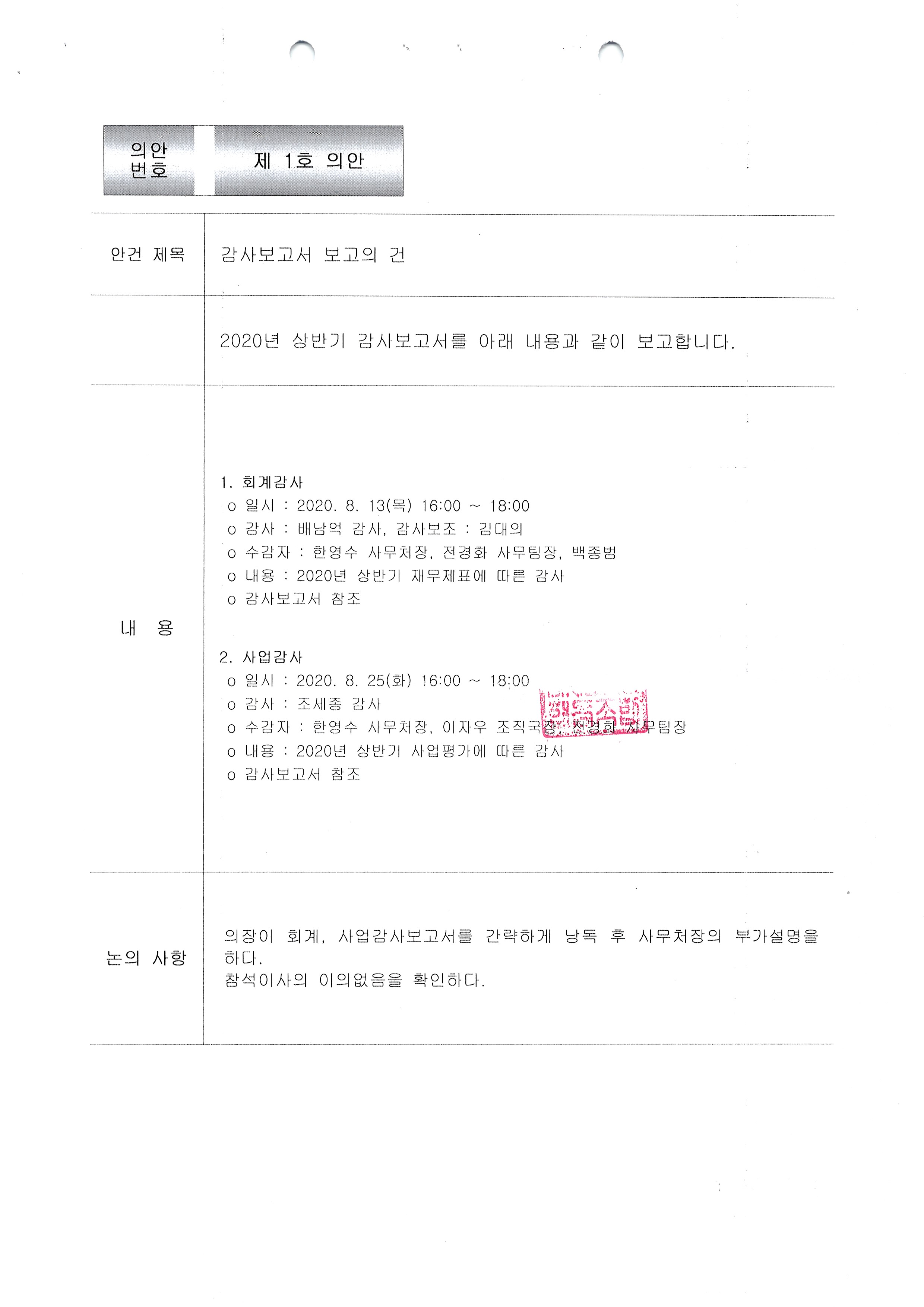 [2020-08] 정기이사회 결과보고