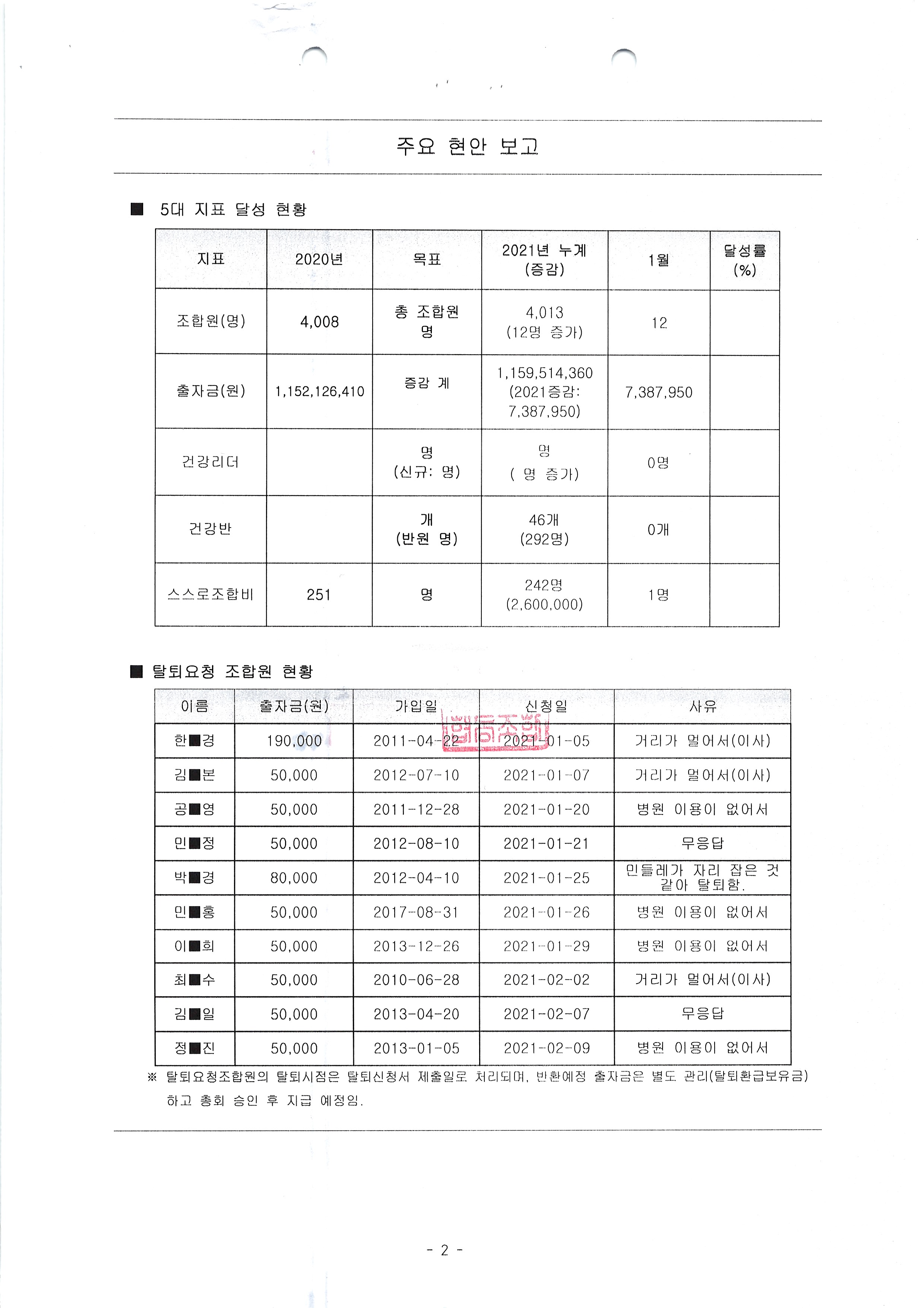 탈퇴 및 출자금반환 신청