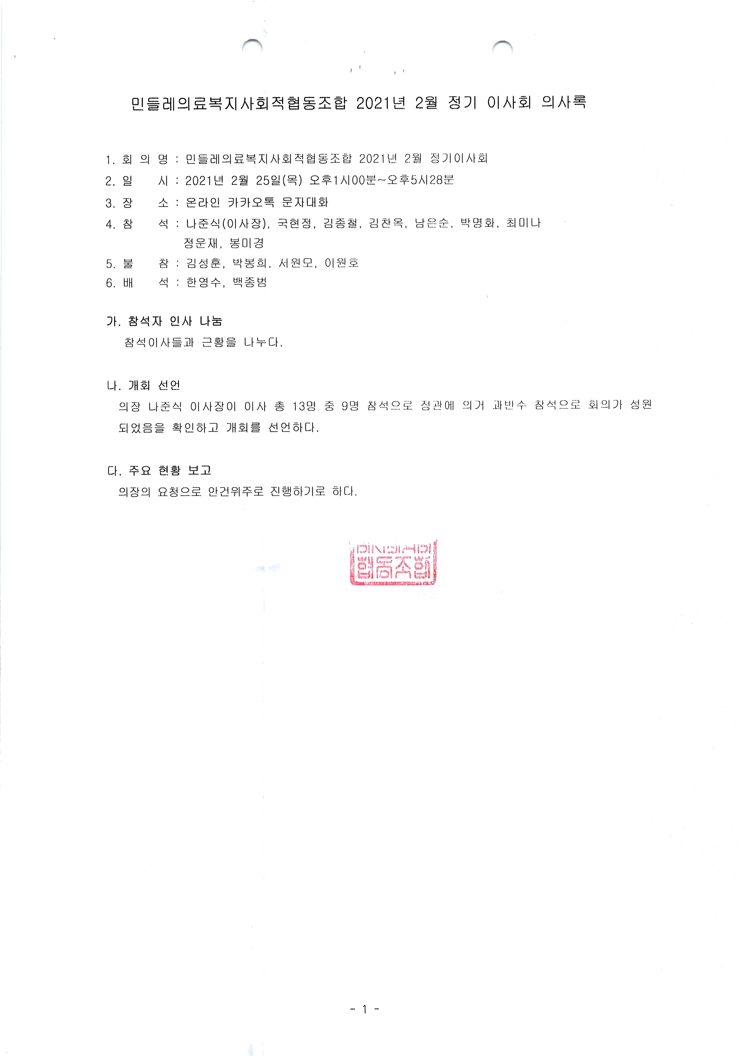 [2021-02] 임시이사회 결과보고