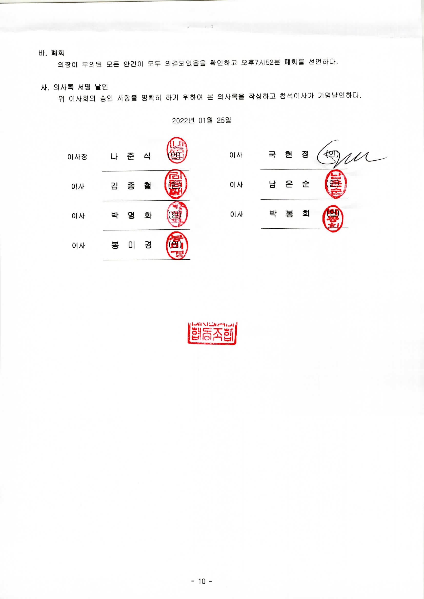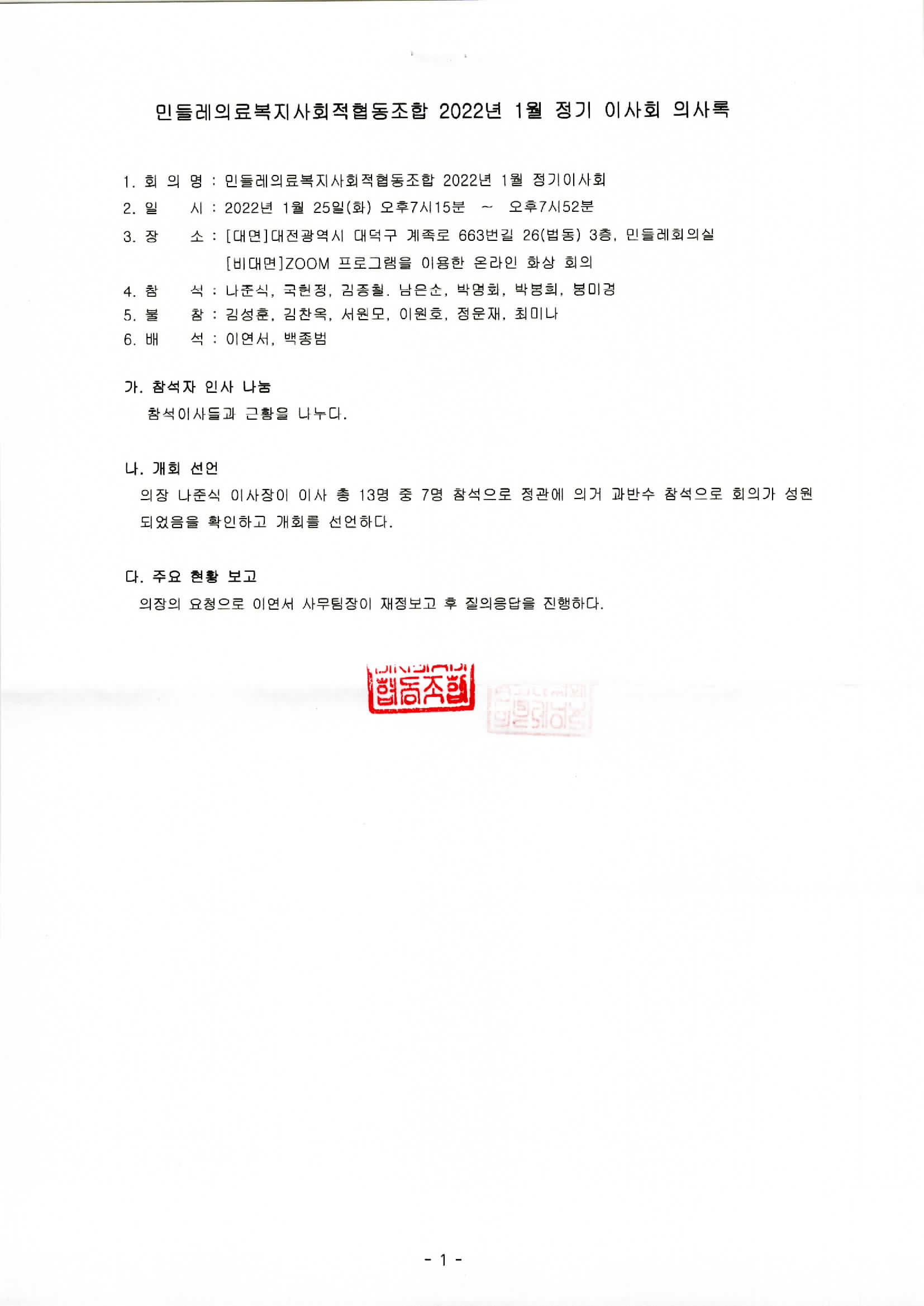 [2022-01] 정기이사회 결과보고