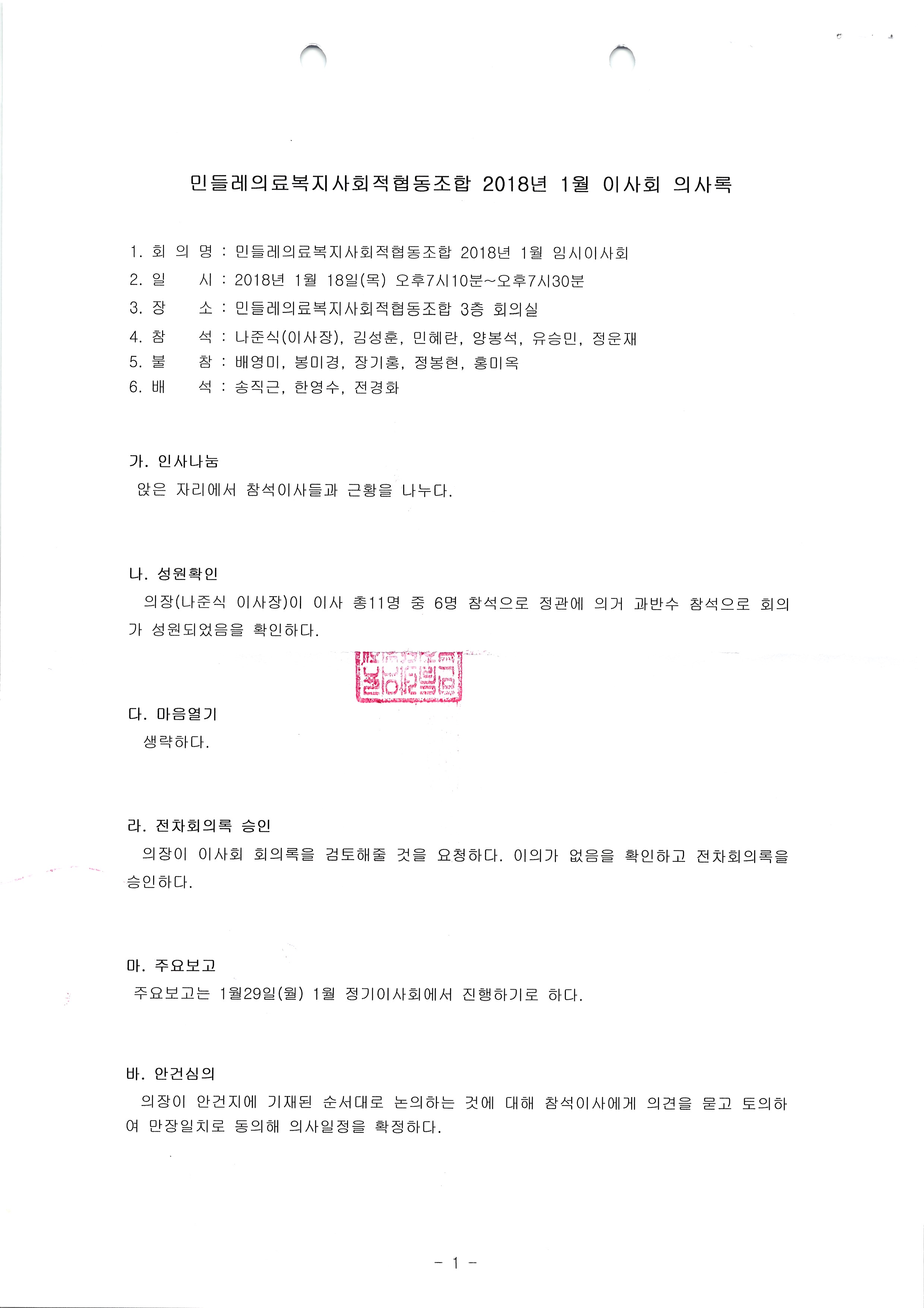 [2018-01] 임시이사회 결과보고
