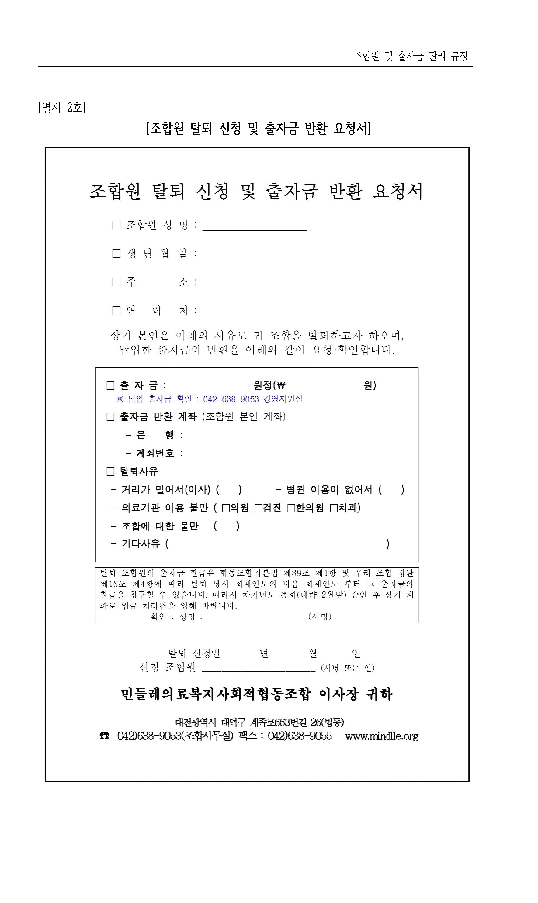 탈퇴 및 출자금반환 신청