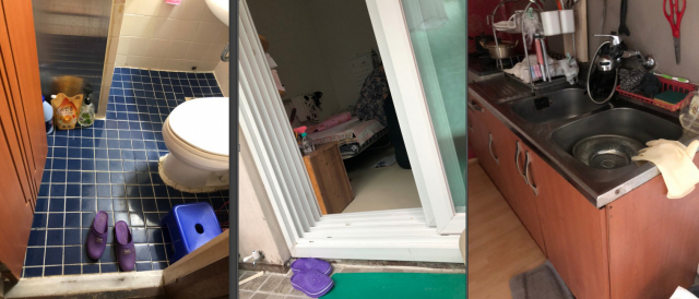 ▲ 왼쪽부터 '미끄러운 욕실 바닥, '발이 걸리는 높은 문턱', '다치기 쉬운 날카로운 모서리'. ⓒ박지영