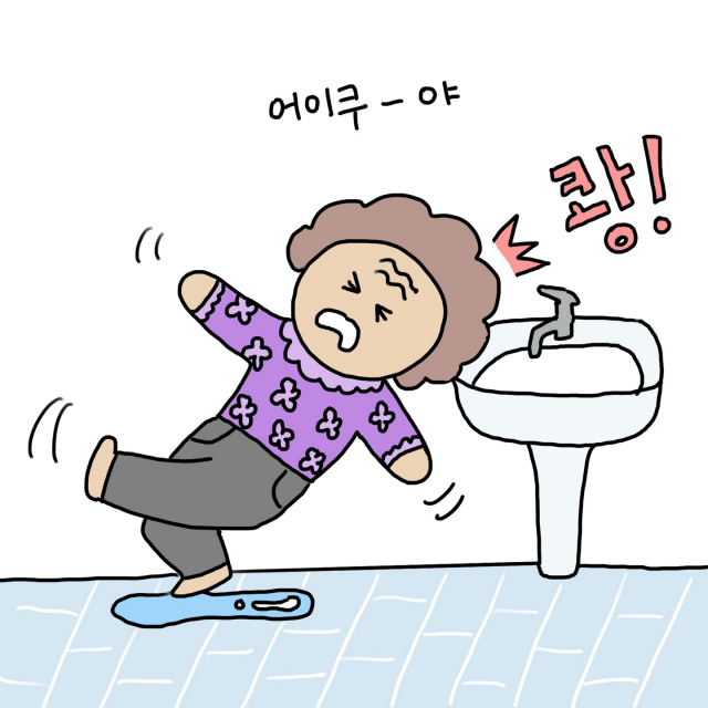 화장실에서 씻으시고 나오다 물 묻은 바닥이 미끄러워 순식간에 넘어져 갈비뼈가 골절된 어르신, 눈길에서 미끄러져 엉덩방아를 찧은 후 꼬리뼈가 골절된 어르신, 집에서 넘어지면서 머리를 부딪쳐 뇌출혈이 생겼는데 뒤늦게야 발견된 어르신도 계셨습니다.
