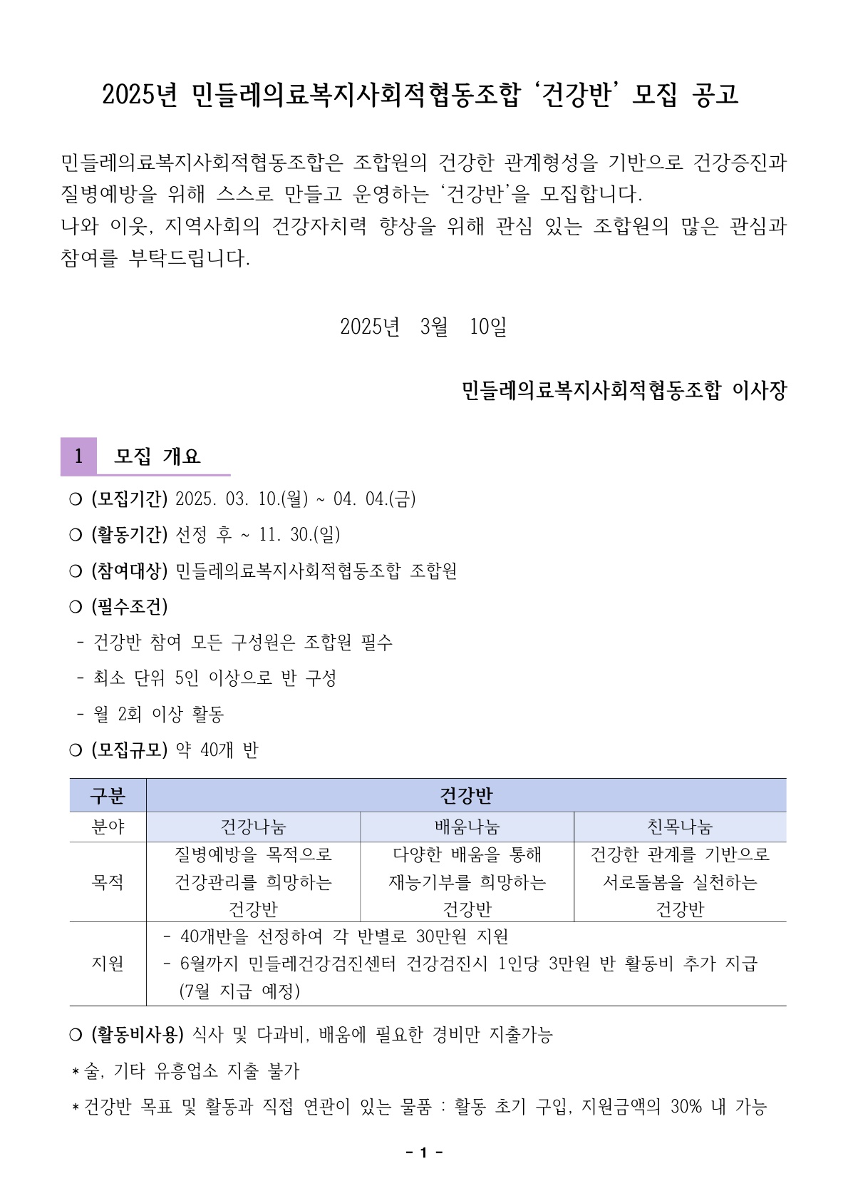 [마감] 2025년 건강반 모집 공고