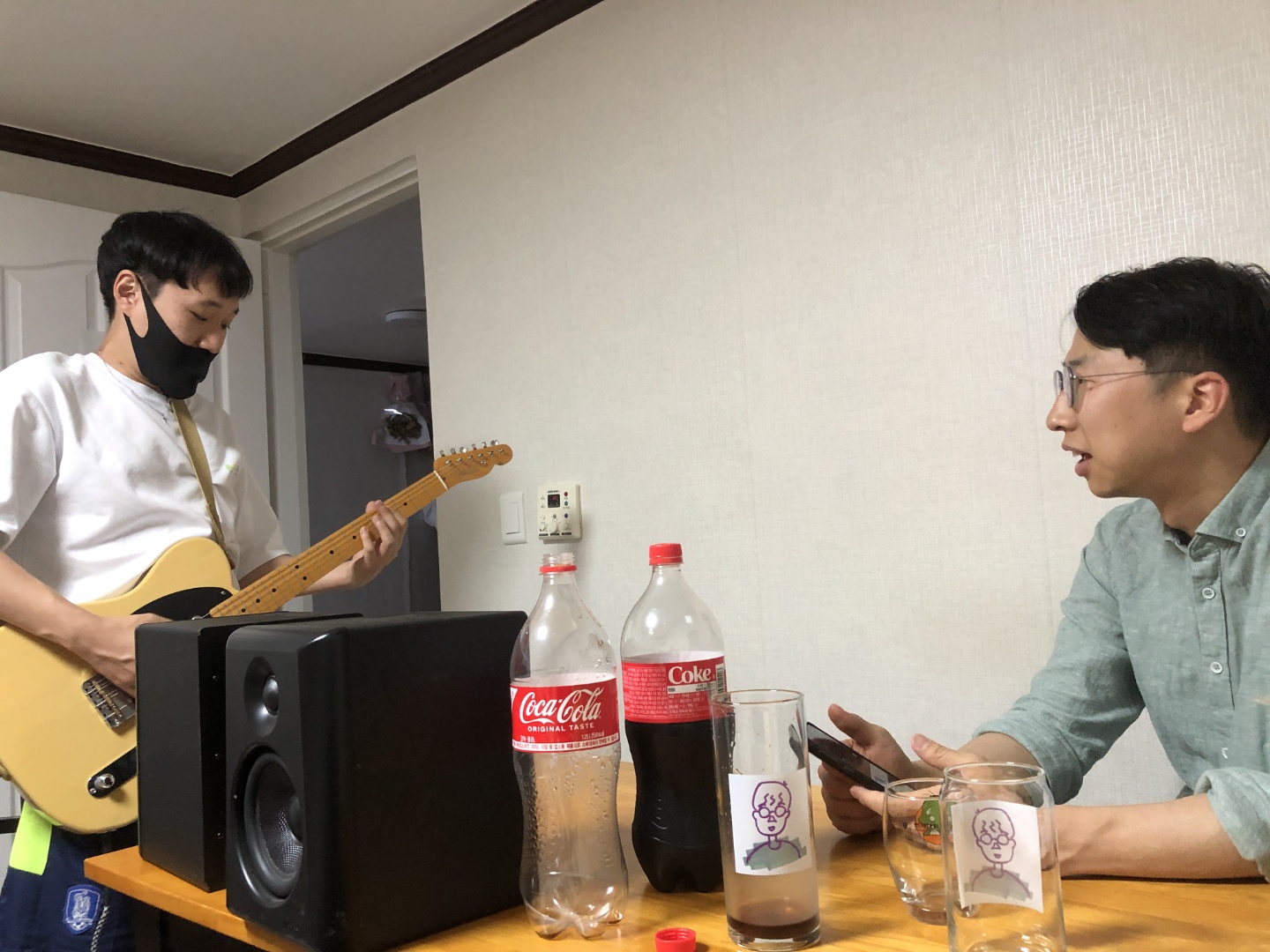 [2차 모임] 1. 식사 진행 2. 악기 연할 첫 분담 및 간단한 실습 - 배은열 : 건반 및 기타 (메인악기 담당) - 권세현 : 기타 (세컨드 기타) -> 파워 코드 연습 실행 - 권인호 : 타악기 전반 3. 전체적인 선곡 - 선곡 논의 결과 1번곡 : 윤수일의 '아파트' 2번곡 : 김수철의 '젊은 그대' * 유명한 한국 고전 록 명곡 + 응원가 + 희망찬 분위기 + 현대적인 재해석 ** 재해석 방향은 추가 논의, 우선 코드 및 노래 숙지 우선