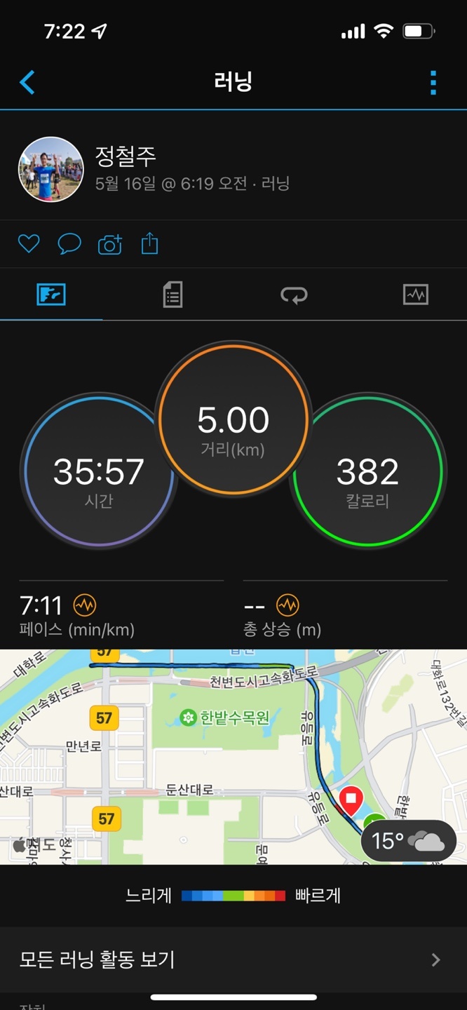 6시30분 갑천변 도로 따라 런닝