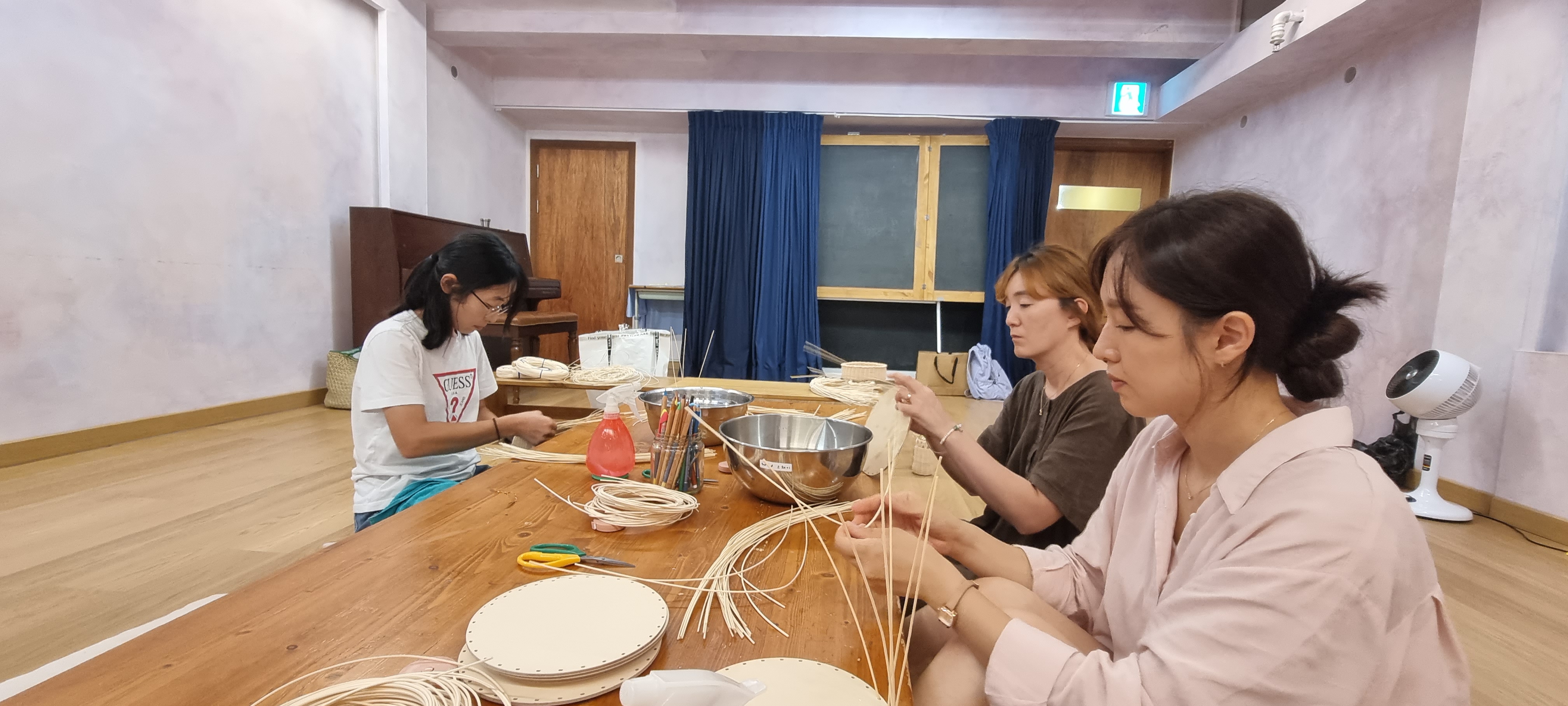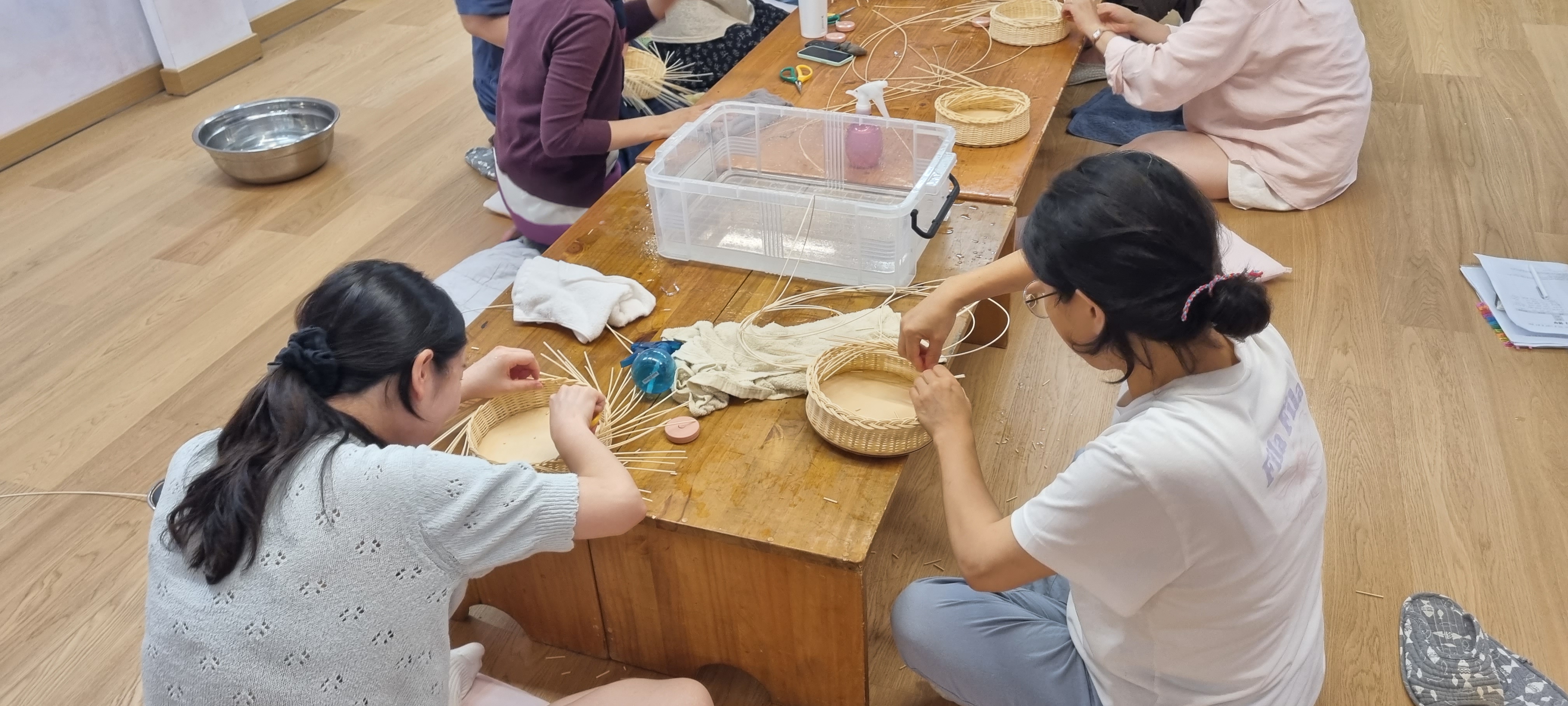 라탄공예-원형 바구니 만들기 근황나누기 (휴가 이야기) 및 등나무 심지 익혀 작업하기