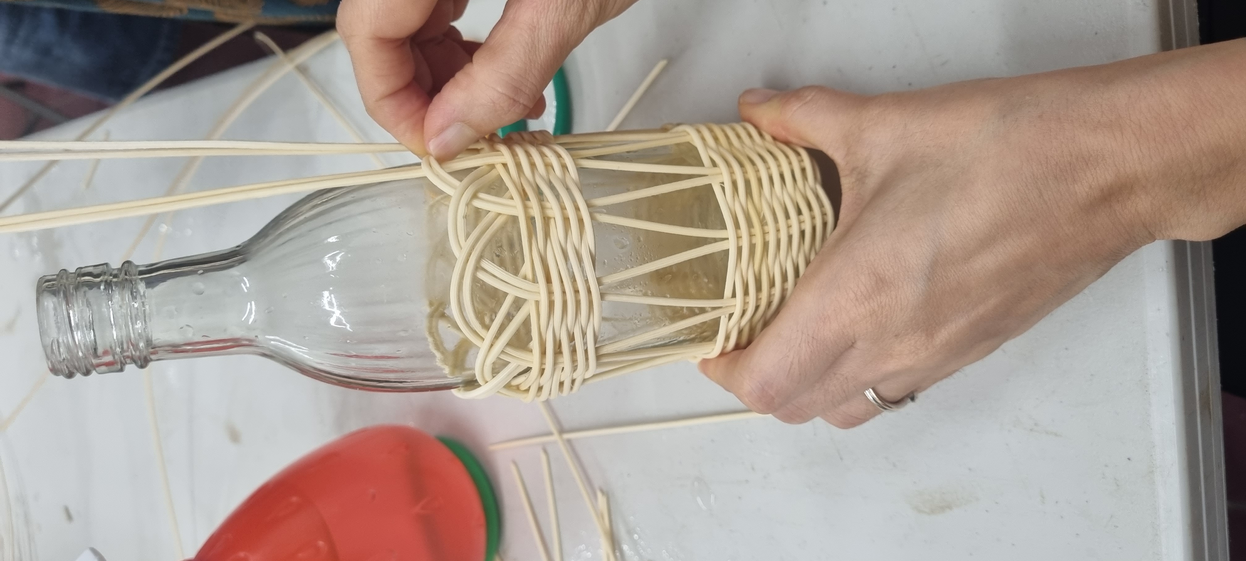 라탄공예-타원형 바구니 및 꽃병 만들기 근황나누기(여름 휴가 이야기) 바닥 작업하며 꽃병 틀 올리기